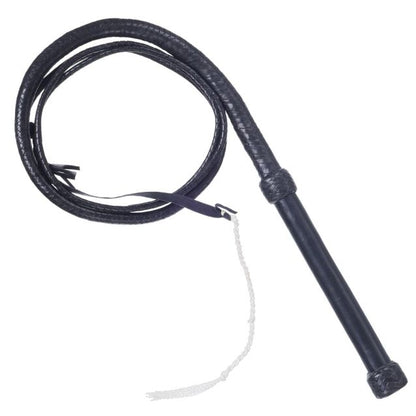 This black deluxe bull whip features quality leather plating and a sturdy wooden handle. The leather-covered handle features a plated leather cap at the end to ensure it stays in your hand. The cracker is made of leather with a replaceable nylon popper. This is the perfect whip for working livestock or sport whip cracking.